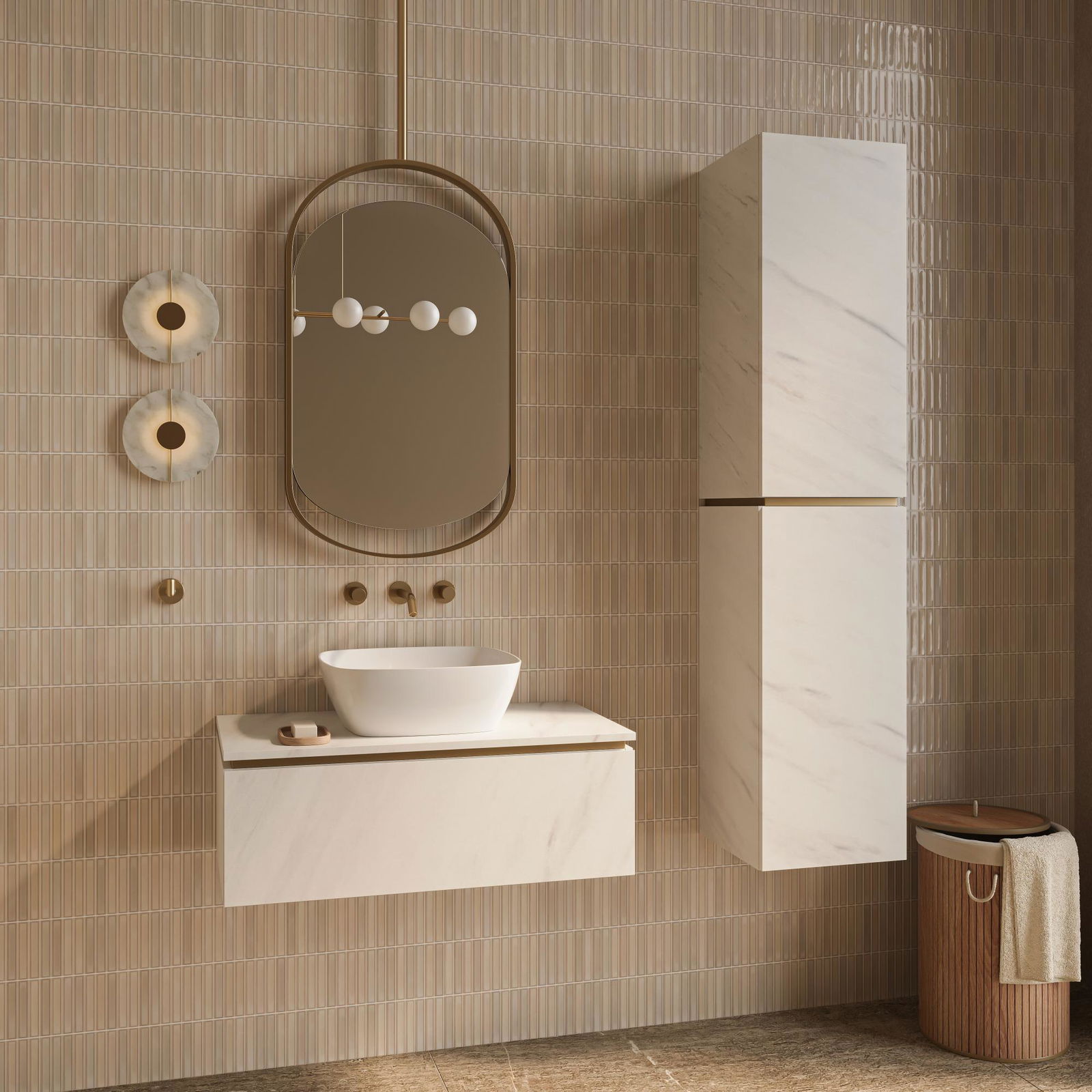 Κρεμαστή στήλη μπάνιου Dalmo III-Λευκό Μάρμαρο