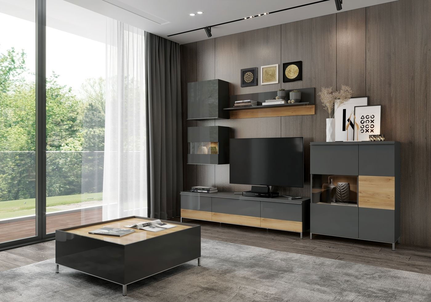 Κρεμαστή ντουλάπι Agate, μοντέρνου σχεδιασμού, σε ανθρακί απόχρωση, με ευρύχωρο αποθηκευτικό χώρο και πρακτικές διαστάσεις που την καθιστούν ιδανική για κάθε σαλόνι.