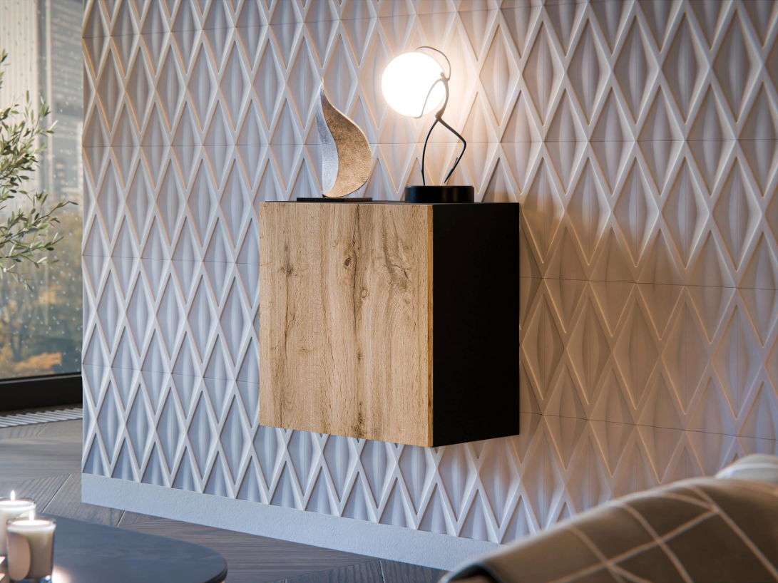 Το κρεμαστό ντουλάπι Capital I ξεχωρίζει με τον λιτό, γεωμετρικό του σχεδιασμό και προσθέτει διακριτική κομψότητα σε κάθε χώρο. Διαθέτει πρακτικά ράφια για βιβλία, διακοσμητικά και καθημερινά αντικείμενα, ενώ η κλειστή πρόσοψη ενισχύει τον μίνιμαλ χαρακτήρα του.