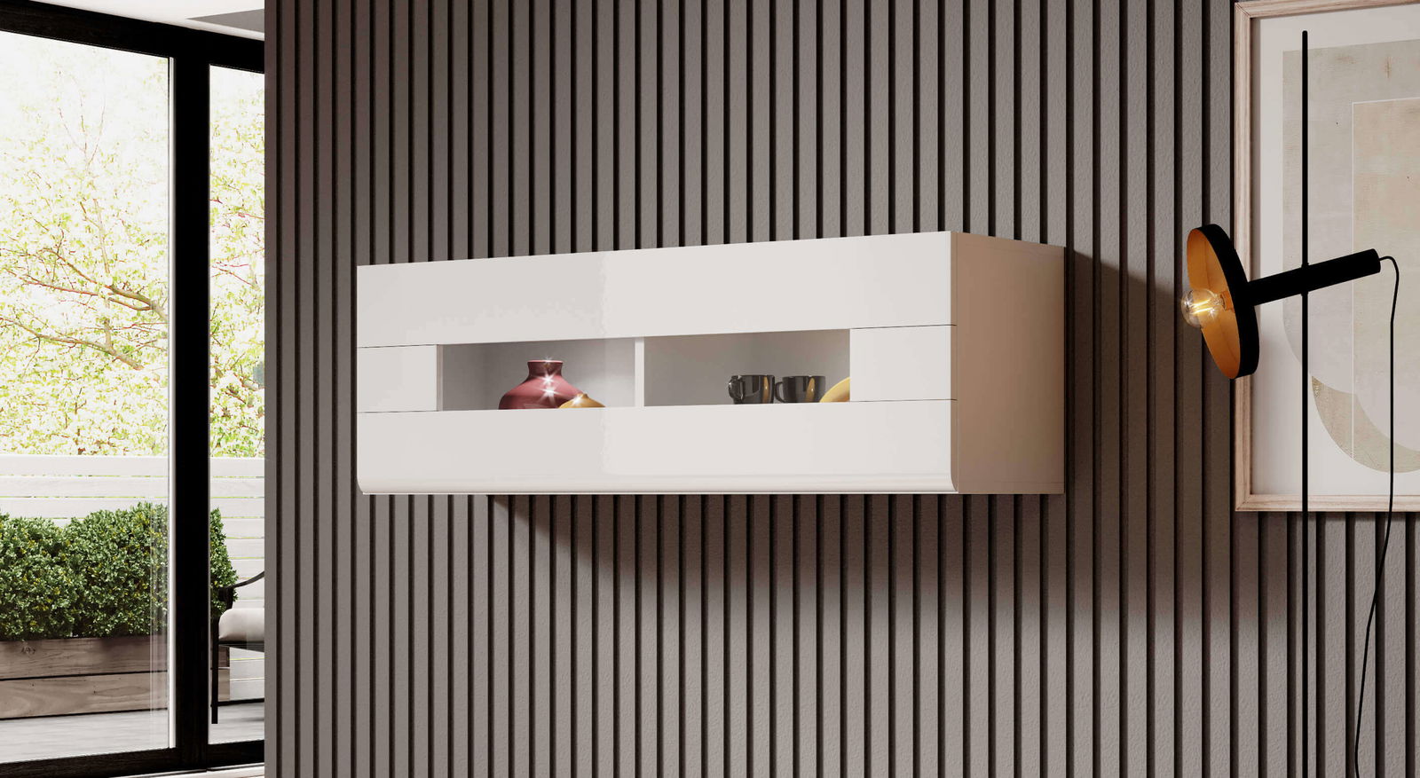 Κρεμαστό ντουλάπι Toldo 08, μοντέρνου σχεδιασμού θα ξεχωρίζει στο καθιστικό και θα προσφέρει τον απαραίτητο χώρο για έχετε τα αντικείμενα σας τακτοποιημένα και οργανωμένα.