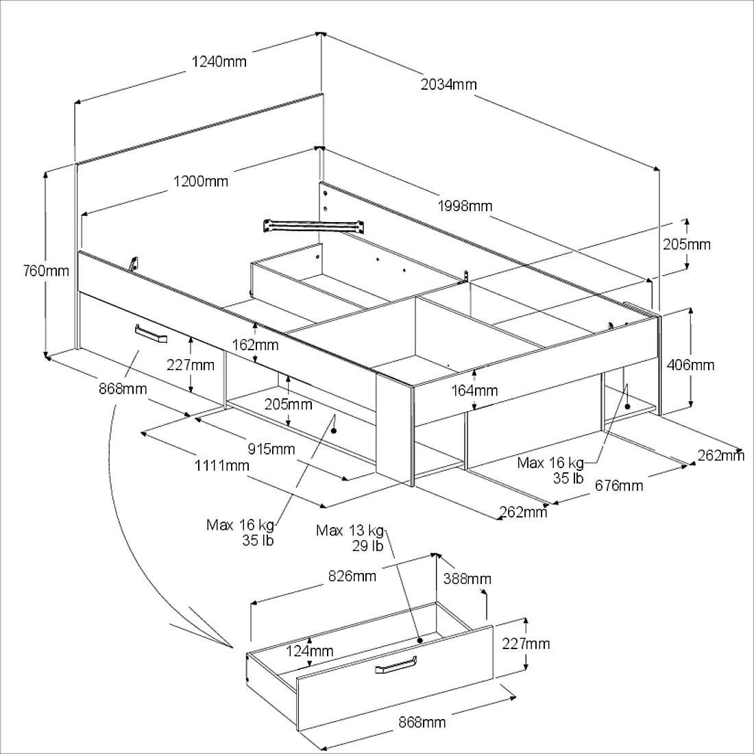 – 2 συρτάρια