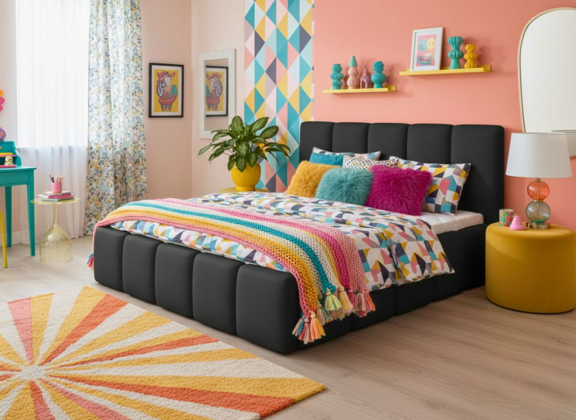 Επενδεδυμένο Κρεβάτι Edvi μοντέρνου σχεδιασμού με σχέδιο στο κεφαλάρι και περιμετρικά του κρεβατιού