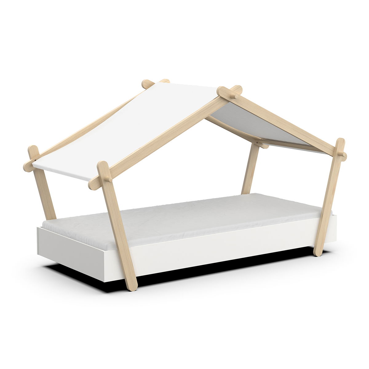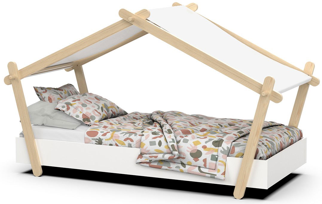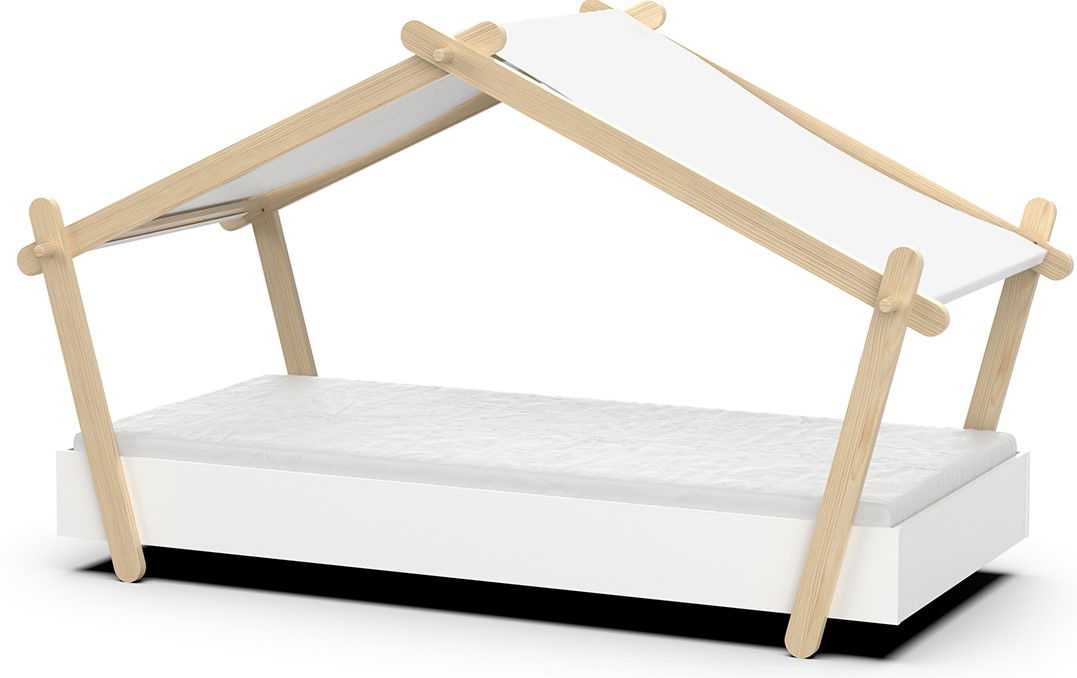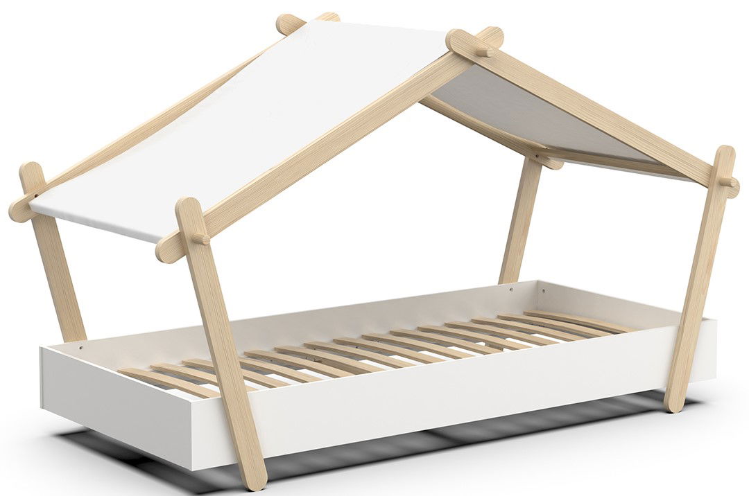 Ένα κρεβάτι που θα αναβαθμίσει την αισθητική του παιδικού δωματίου. Πρωτοποριακά σχεδιασμένο με όμορφες καμπύλες και οροφή, θα κλέψει τις καρδιές όλων! Οι κουρτίνες στην οροφή δίνουν μια μοναδική χροιά στο χώρο.