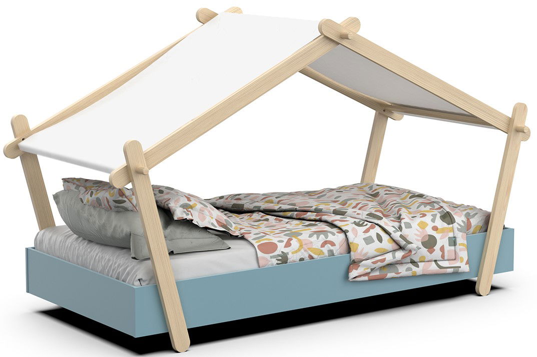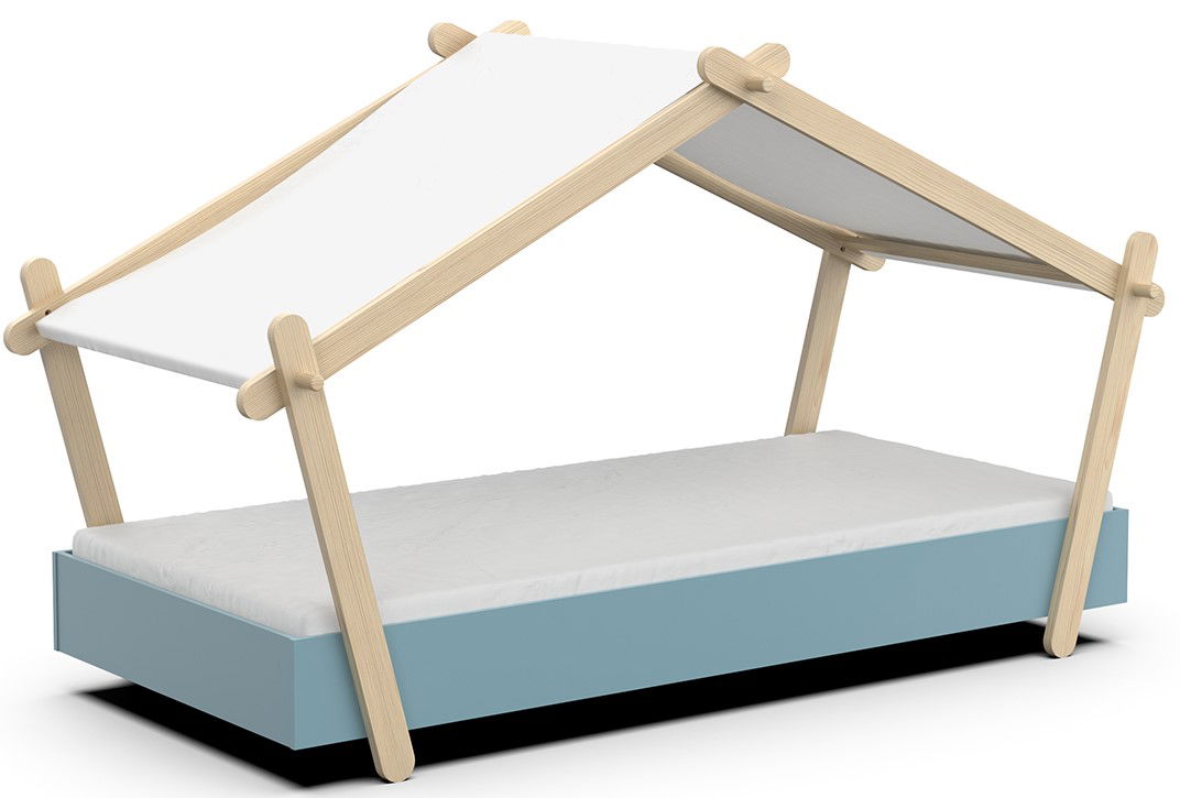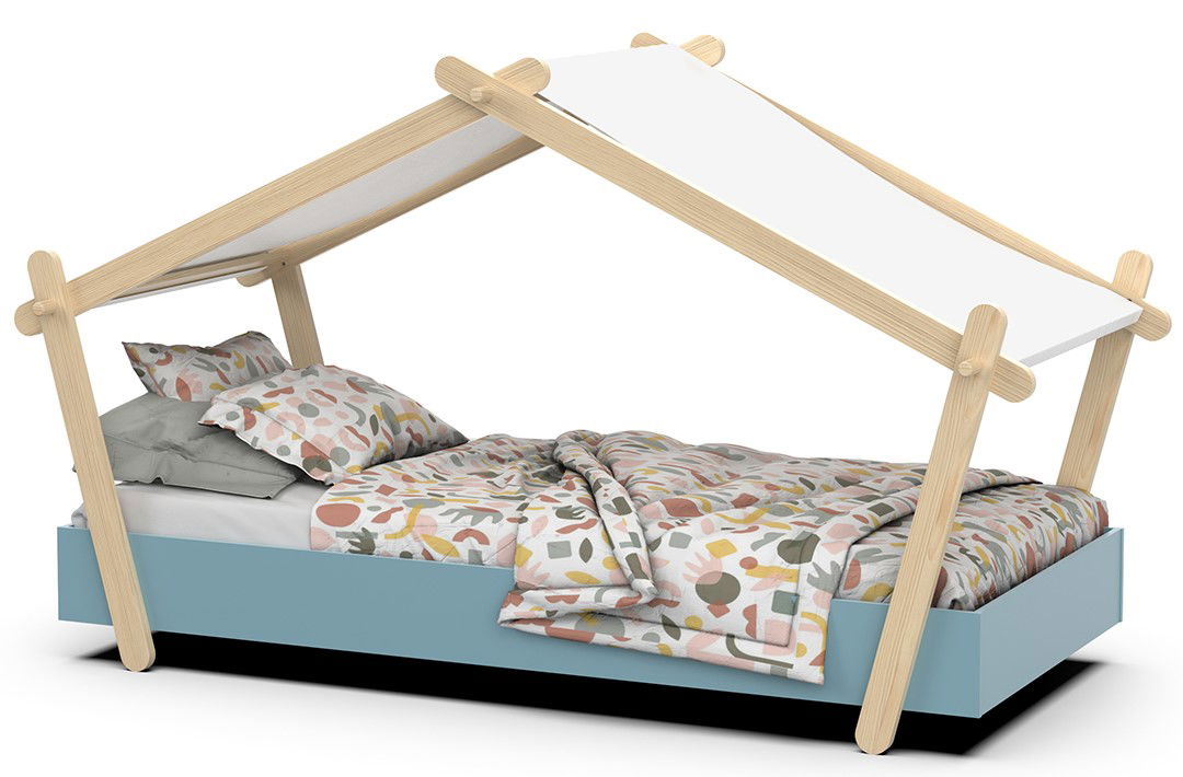 Ένα κρεβάτι που θα αναβαθμίσει την αισθητική του παιδικού δωματίου. Πρωτοποριακά σχεδιασμένο με όμορφες καμπύλες και οροφή, θα κλέψει τις καρδιές όλων! Οι κουρτίνες στην οροφή δίνουν μια μοναδική χροιά στο χώρο.