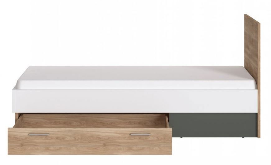 Κρεβάτι Newty, μίνιμαλ σχεδιασμού με ανάλαφρες λεπτομέρειες διχρωμίας που αποφέρουν στυλ, με καταλληλότητα στρώματος 90 x 200 ή 120 x 200 και συρόμενο αποθηκευτικό χώρο. Συνδιάστε το με έναν φωτισμό στο κεφαλάρι για ένα πιο ευχάριστο αποτέλεσμα.