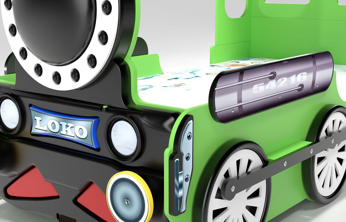 To παιδικό κρεβάτι Lokomotive είναι ένα κρεβάτι σε σχήμα τρένου, που θα ξετρελάνει τους μικρούς μας φίλους. Η μοναδική και λεπτομερής σχεδίαση του, θα προσφέρει ατελείωτες στιγμές χαλάρωσης αλλά και παιχνιδιού στο παιδί σας.