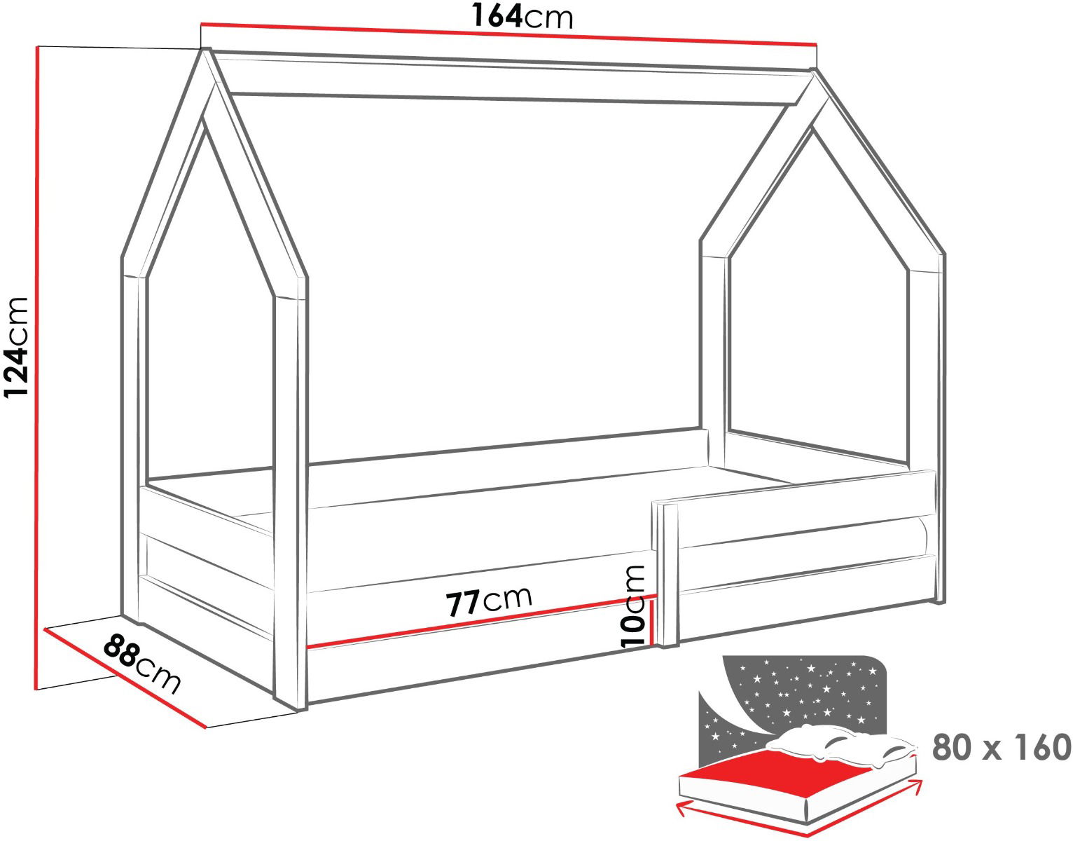 Το παιδικό κρεβάτι Pola σε σχήμα σπιτιού είναι κάτι περισσότερο από ένα απλό μέρος για να κοιμάστε. Το μοντέλο περιλαμβάνει προστατευτικό φράγμα που προστατεύει από τυχαίες πτώσεις. Είναι ένας μοναδικός χώρος που μπορεί να είναι πειρατικό πλοίο τη μια μέρα και ένα μυστηριώδες παλάτι την επόμενη. Μια εξαιρετική επιλογή τόσο για αγόρια όσο και για κορίτσια.