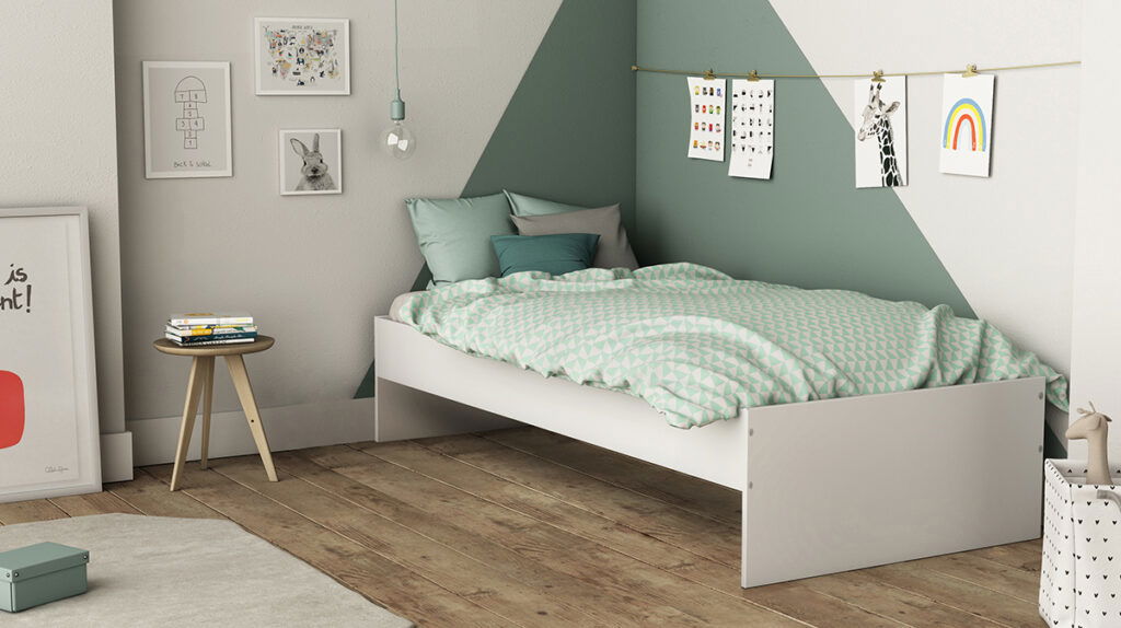 Μονό παιδικό κρεβάτι Tiby σε λιτό σχεδιασμό και λευκό χρώμα. Συνδυάζεται ιδανικά με την εταζέρα και το συρτάρι κρεβατιού της ίδιας σειράς για ένα όμορφο και πρακτικό παιδικό υπνοδωμάτιο.