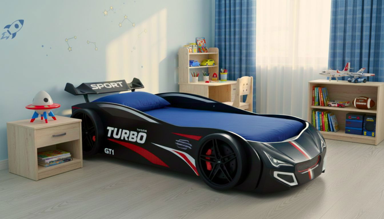 Το παιδικό κρεβάτι Turbo plus, αποτελεί την ιδανική επιλογή για ένα δωμάτιο…ταχύτητας! Χαρακτηριστικές λεπτομέρειες του κρεβατιού, η αεροτομή, οι ζάντες οι προβολείς του αυτοκινήτου και ο αεροδυναμικός προφυλακτήρας στο μπροστινό του μέρος! Συνδυάζει ύπνο αλλά και παιχνίδι ταυτόχρονα!