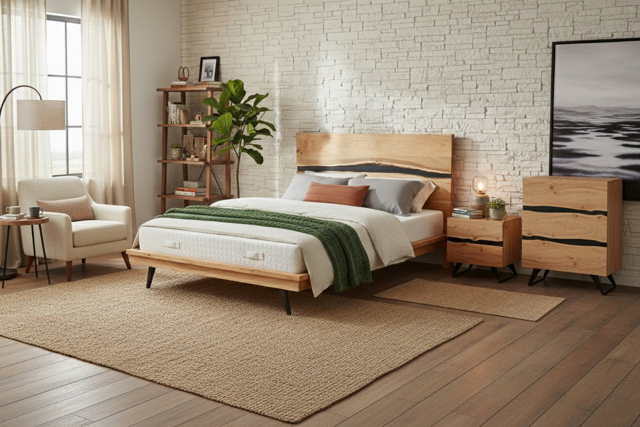 Το κρεβάτι Rhea ξεχωρίζει για τη διακριτική του παρουσία και τη φυσική κομψότητα. Οι λεπτομέρειες των νερών στις ξύλινες επιφάνειες τονίζουν τη ζεστασιά και την αυθεντικότητα του σχεδιασμού του.