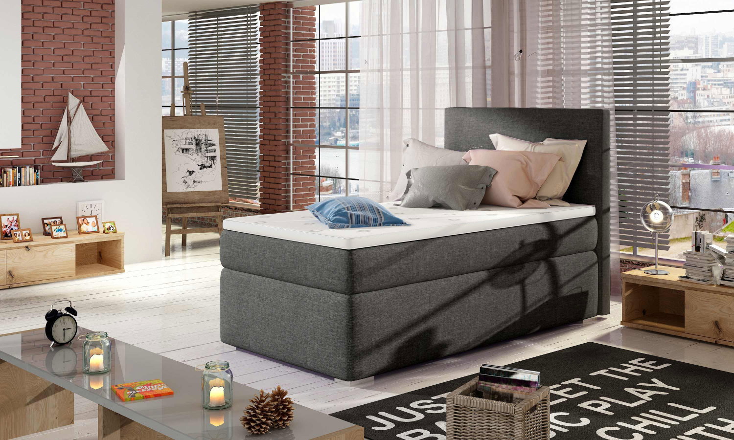 Επενδυμένο κρεβάτι Rico, σε πρακτικές διαστάσεις και έξυπνο σχεδιασμό ιδανικό για την κρεβατοκάμαρα ή το παιδικό δωμάτιο