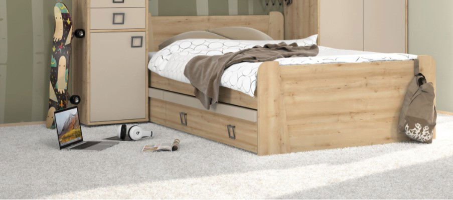 Κρεβάτι Riddle 120, σε κλασικό μινιμαλ σχεδιασμό, με πρακτικές διαστάσεις που το καθιστούν ιδανική επιλογή για κάθε παιδικό δωμάτιο.