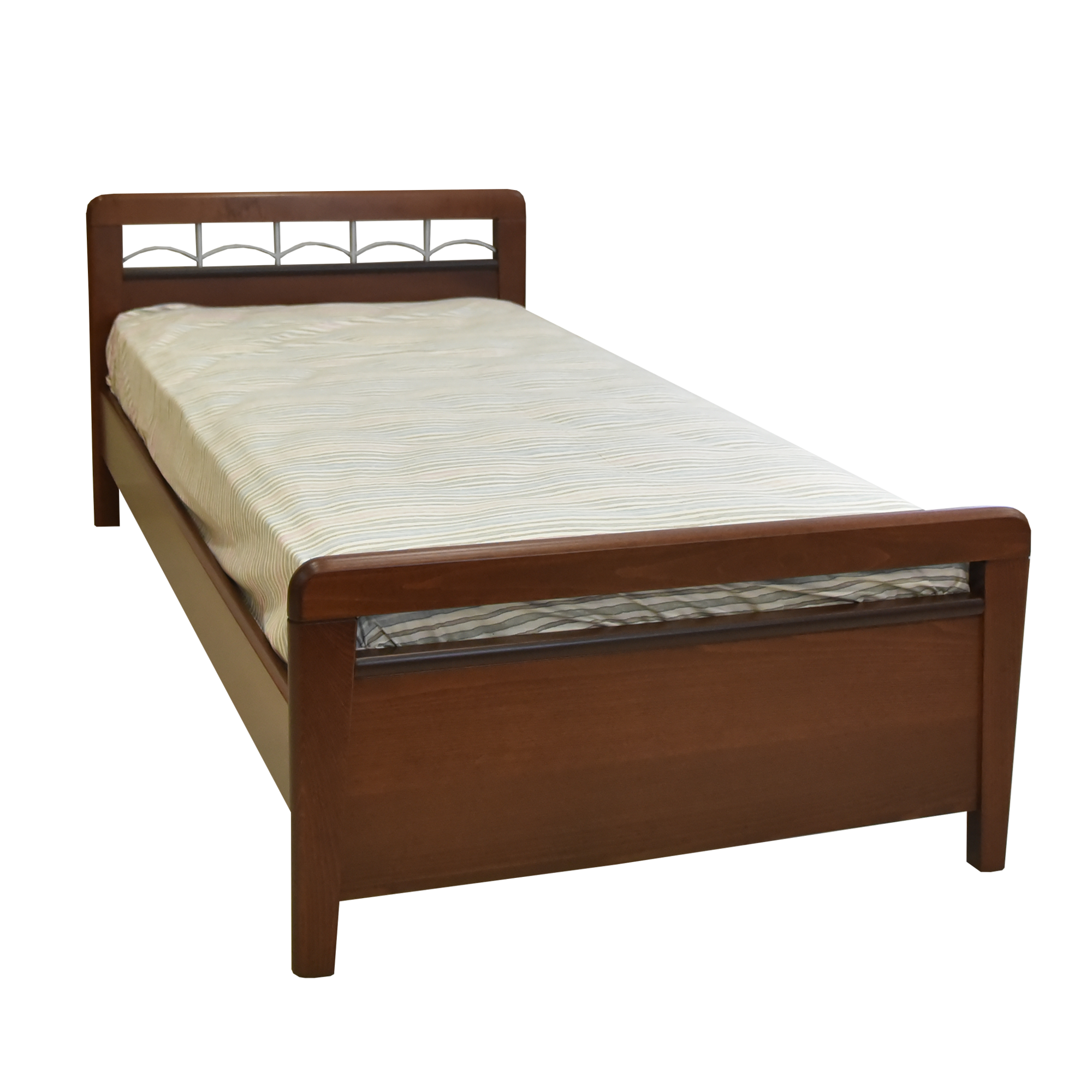 Μονό Ξύλινο Κρεβάτι από Οξιά με Μεταλλικό Κεφαλάρι