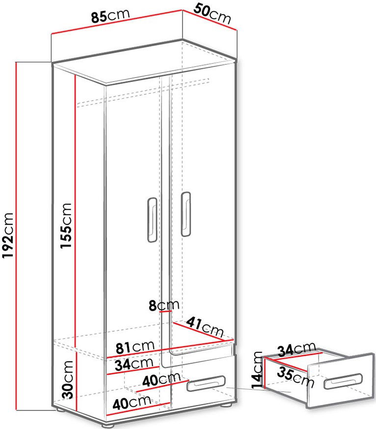 Η δίφυλλη ντουλάπα Apetito, σε μοντέρνες αποχρώσεις διχρωμίας, θα προσφέρει στα παιδιά σας τον κατάλληλο αποθηκευτικό χώρο για τα ρούχα τους και την αποθήκευση μικροαντικειμένων, ενώ οι πρακτικές της διαστάσεις την καθιστούν ιδανική επιλογή.
