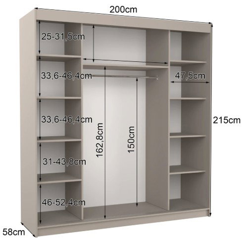Ντουλάπα Bellov 200 συρόμενη-Γκρεζ