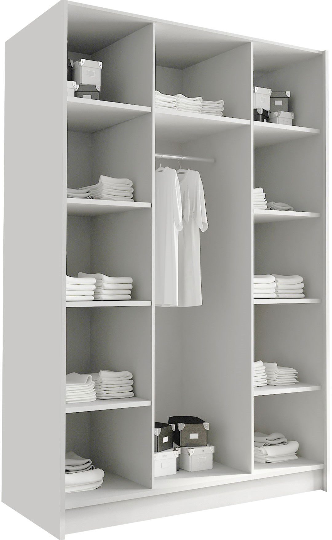Μια κομψή ντουλάπα Πρακτικών διαστάσεων που αποτελεί απαραίτητη προσθήκη σε κάθε χώρο είναι η τρίφυλλη ντουλάπα Calia. Μέσα στην ντουλάπα θα βρείτε πρακτικά ράφια και ράγα για να τοποθετήσετε τα ρούχα σας.Είναι μια επιλογή για να χαρίσετε νέα πνοή στον χώρο του σπιτιού σας και μεγάλη πρακτικότητα.