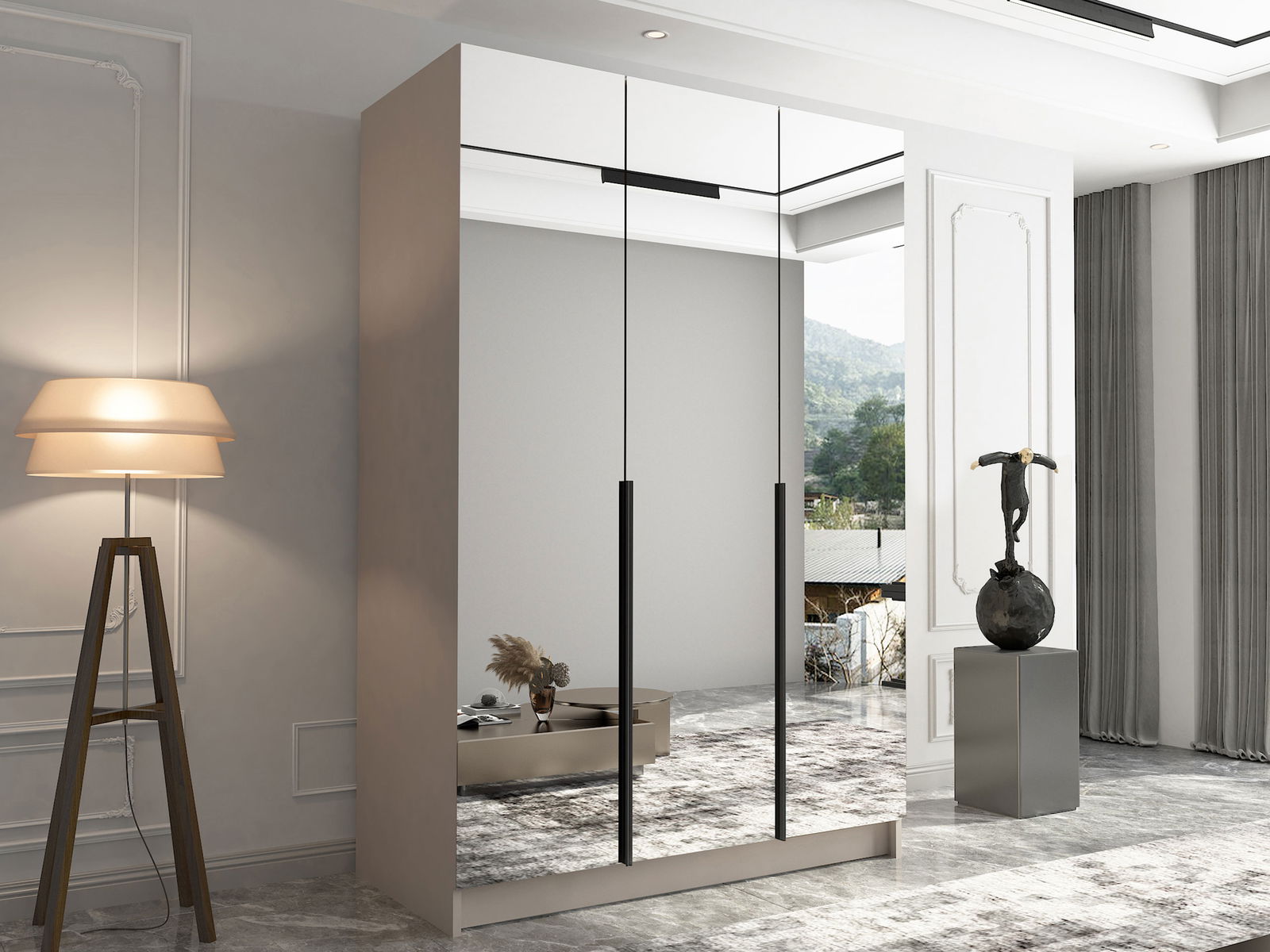 Μια κομψή ντουλάπα Πρακτικών διαστάσεων που αποτελεί απαραίτητη προσθήκη σε κάθε χώρο είναι η δίφυλλη ντουλάπα Calia. Μέσα στην ντουλάπα θα βρείτε πρακτικά ράφια και ράγα για να τοποθετήσετε τα ρούχα σας.Εξωτερικά η ντουλάπα διαθέτει τρεις  ολόσωμους καθρέπτες  που αναβαθμήζουν τον χόρο σας.Είναι μια επιλογή για να χαρίσετε νέα πνοή στον χώρο του σπιτιού σας και μεγάλη πρακτικότητα.