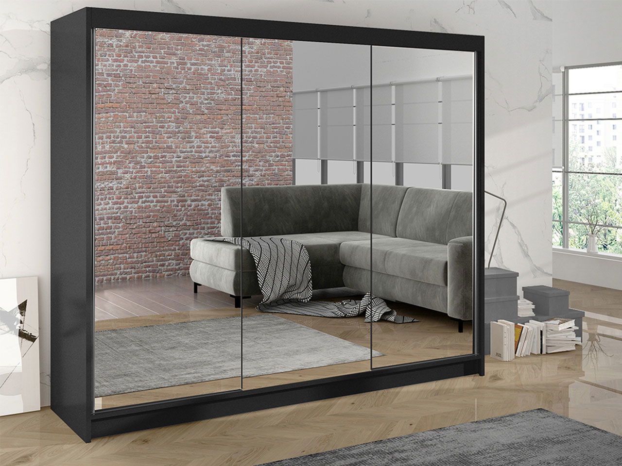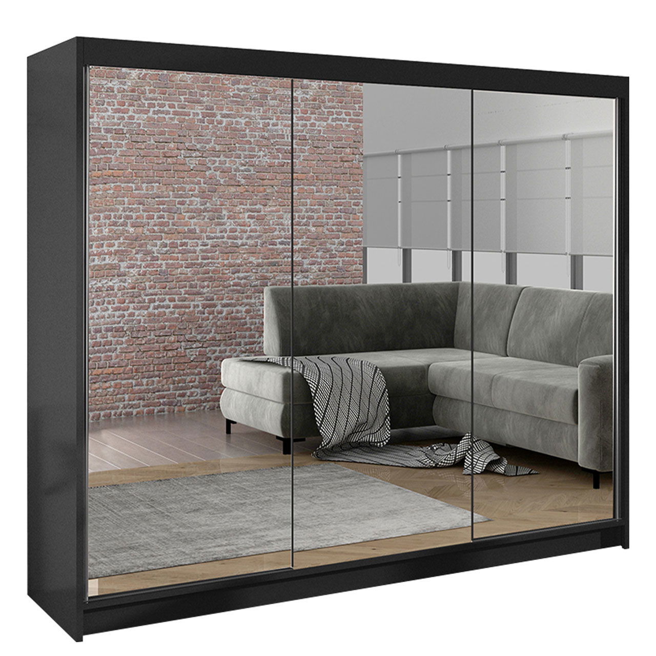 Ντουλάπα Derby III συρόμενη, μοντέρνου σχεδιασμού, με πρακτικούς αποθηκευτικούς χώρους με ράγα για κρεμάστρες και ράφια για καλύτερη οργάνωση ρούχων και αντικειμένων.
