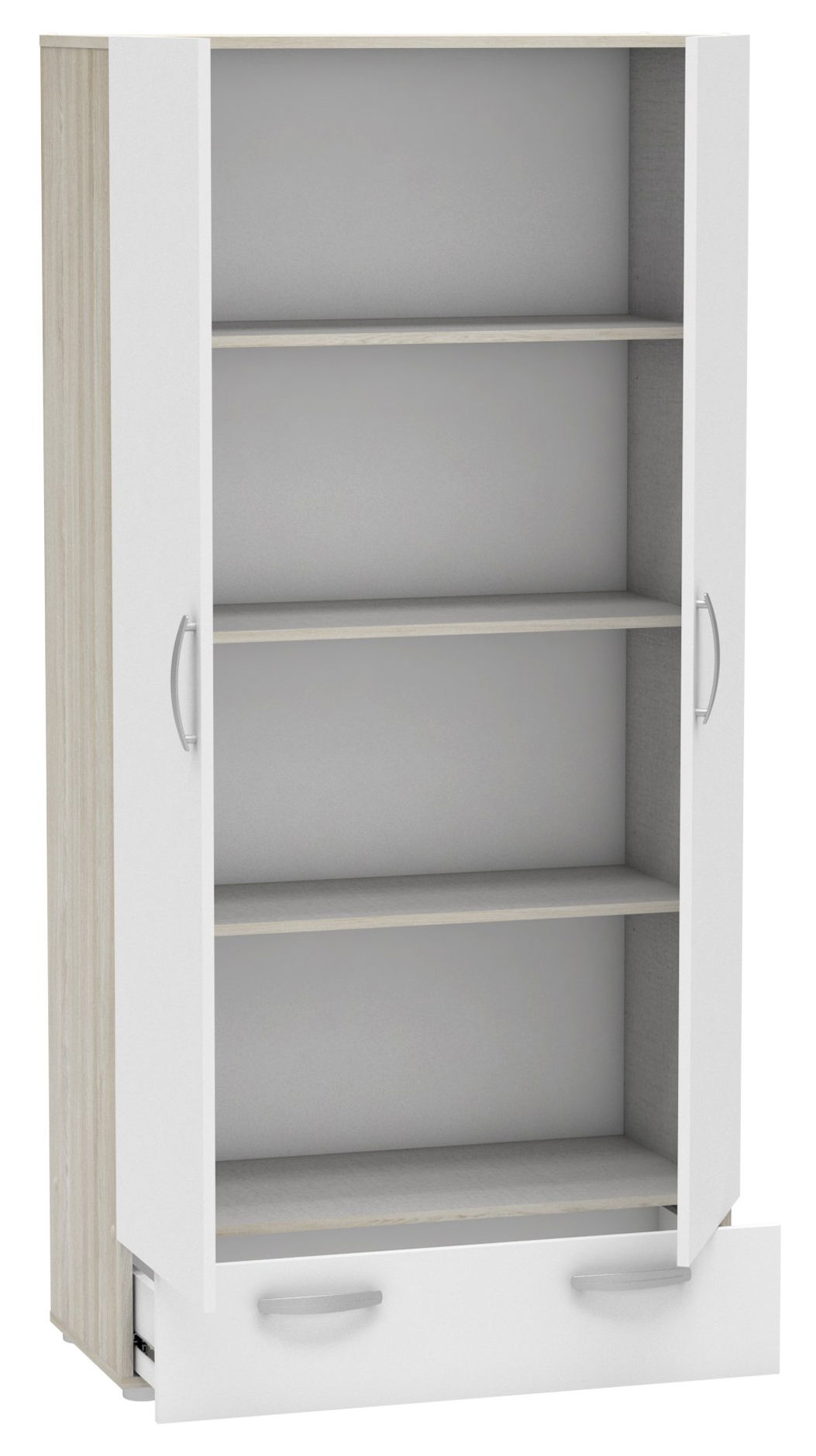 Μια μοντέρνα ντουλάπα ιδανική για μικρούς και μεγάλους χώρους. Χάρη στη διχρωμία του, μπορεί να ταιριάξει με κάθε είδους διακόσμηση. Διαθέτει 4 αποθηκευτικούς χώρους και ένα συρτάρι.