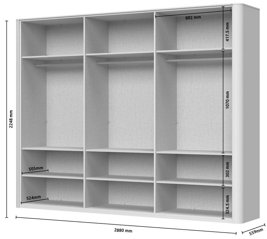 Αναβαθμίστε την κρεβατοκάμαρά σας ή το βεστιάριο σας με την ντουλάπα Dutchess εξάφυλλη, μια εκλεπτυσμένη λύση αποθήκευσης που συνδυάζει σύγχρονο σχεδιασμό με έξυπνη λειτουργικότητα. Η εντυπωσιακή εμφάνισή της και τα προσεγμένα χαρακτηριστικά της την καθιστούν ιδανική επιλογή για την προβολή και αποθήκευση των ρούχων σας, διατηρώντας παράλληλα μια εκλεπτυσμένη αισθητική.