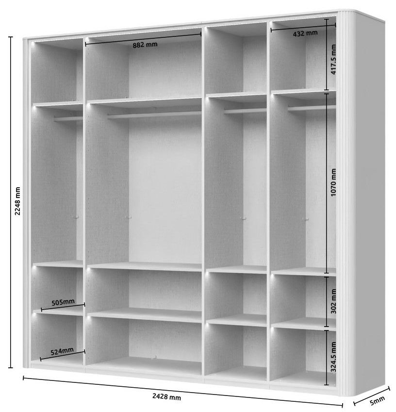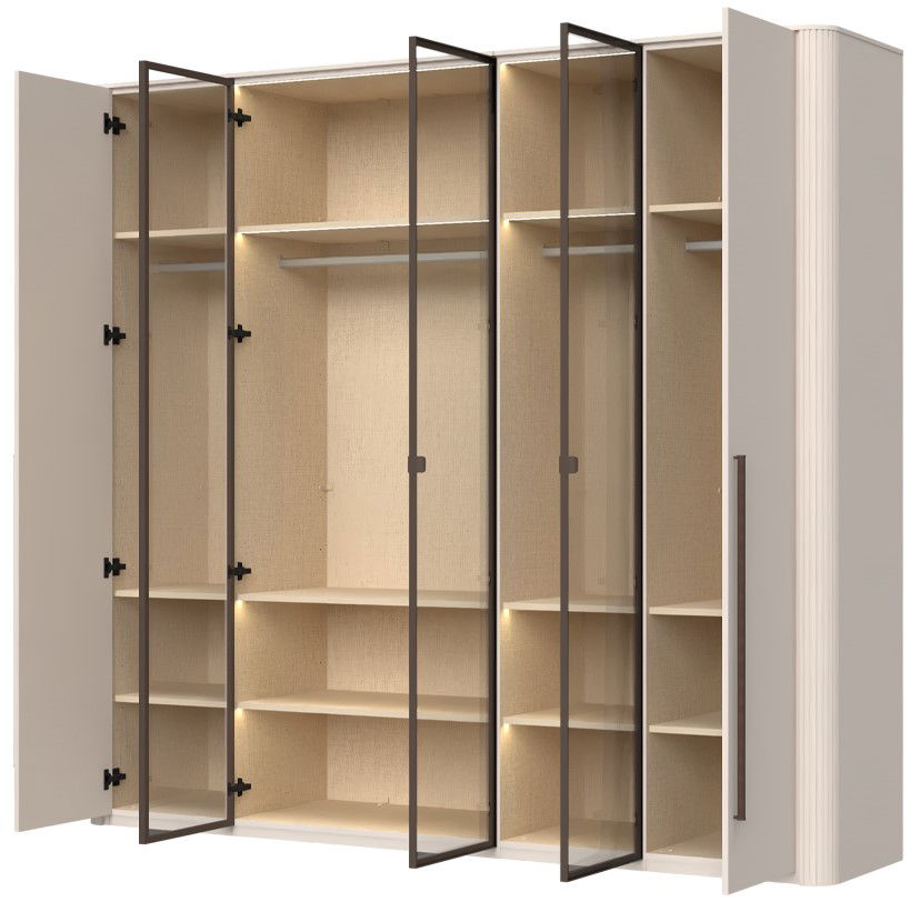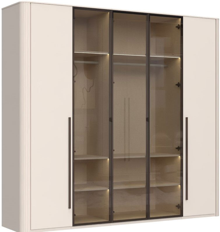 Αναβαθμίστε την κρεβατοκάμαρά σας ή το βεστιάριο σας με την ντουλάπα Dutchess πεντάφυλλη 3 glass, μια εκλεπτυσμένη λύση αποθήκευσης που συνδυάζει σύγχρονο σχεδιασμό με έξυπνη λειτουργικότητα. Η εντυπωσιακή εμφάνισή της και τα προσεγμένα χαρακτηριστικά της την καθιστούν ιδανική επιλογή για την προβολή και αποθήκευση των ρούχων σας, διατηρώντας παράλληλα μια εκλεπτυσμένη αισθητική.