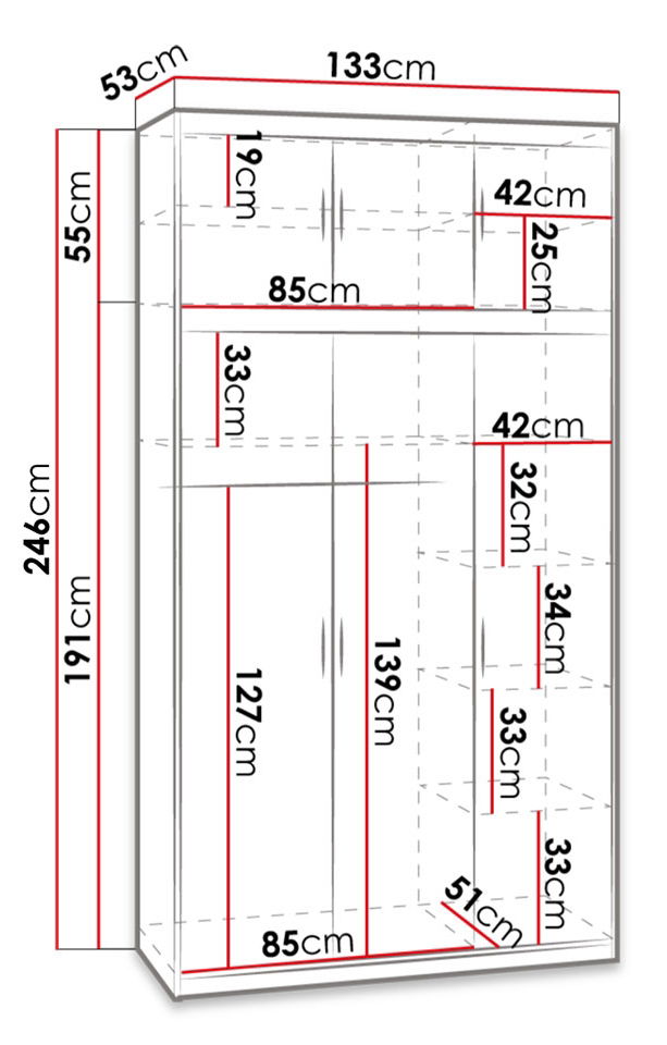 *Απαραίτητη η ύπαρξη επαρκούς χώρου για την ομαλή συναρμολόγηση της ντουλάπας.