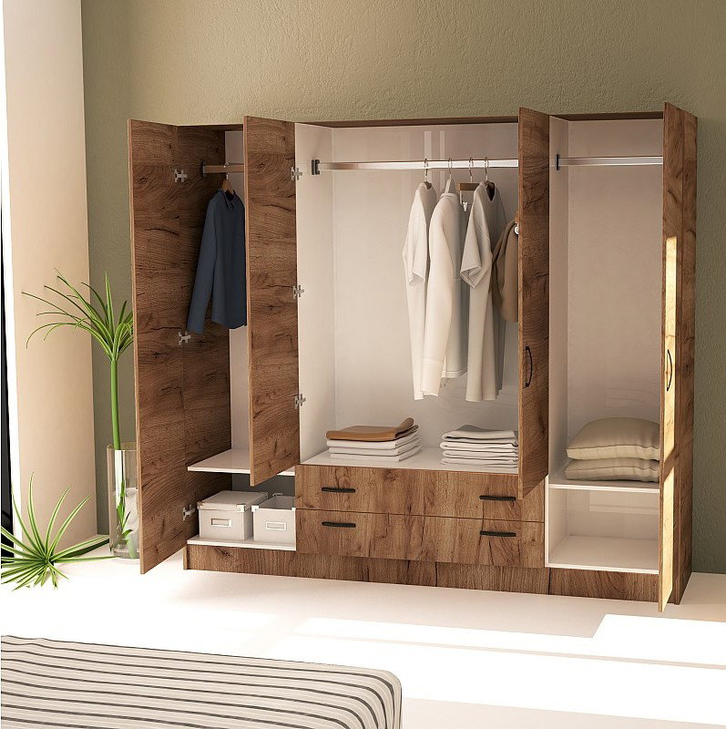 Η τετράφυλλη ντουλάπα Hana, χάρη στις πρακτικές τις διαστάσεις αποτελεί ιδανική επιλογή για κάθε υπνοδωμάτιο.