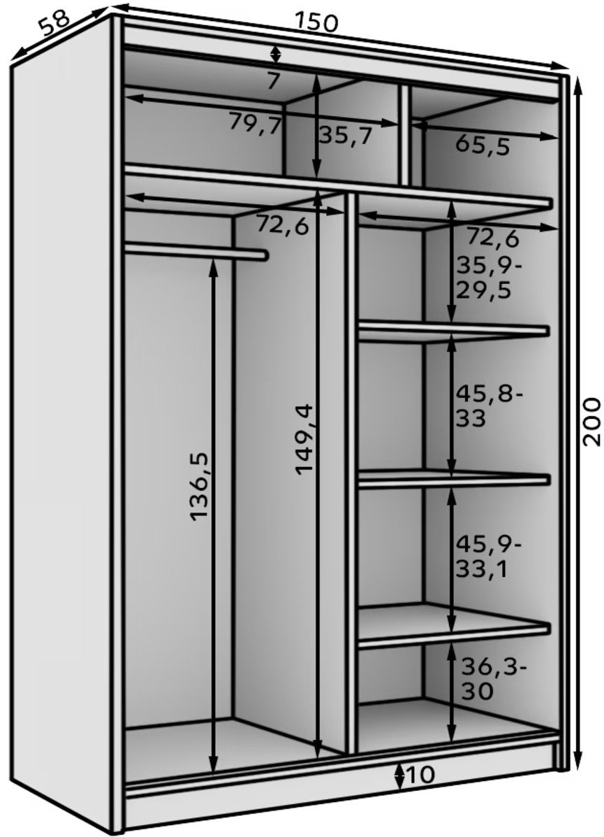 Η συρόμενη ντουλάπα Houston 150 είναι η ιδανική λύση για όσους εκτιμούν το στυλ, τη μοντέρνα εμφάνιση και τη λειτουργικότητα. Eίναι η τέλεια επιλογή για τους ανθρώπους που εκτιμούν την ποιότητα και την άνεση χρήσης.