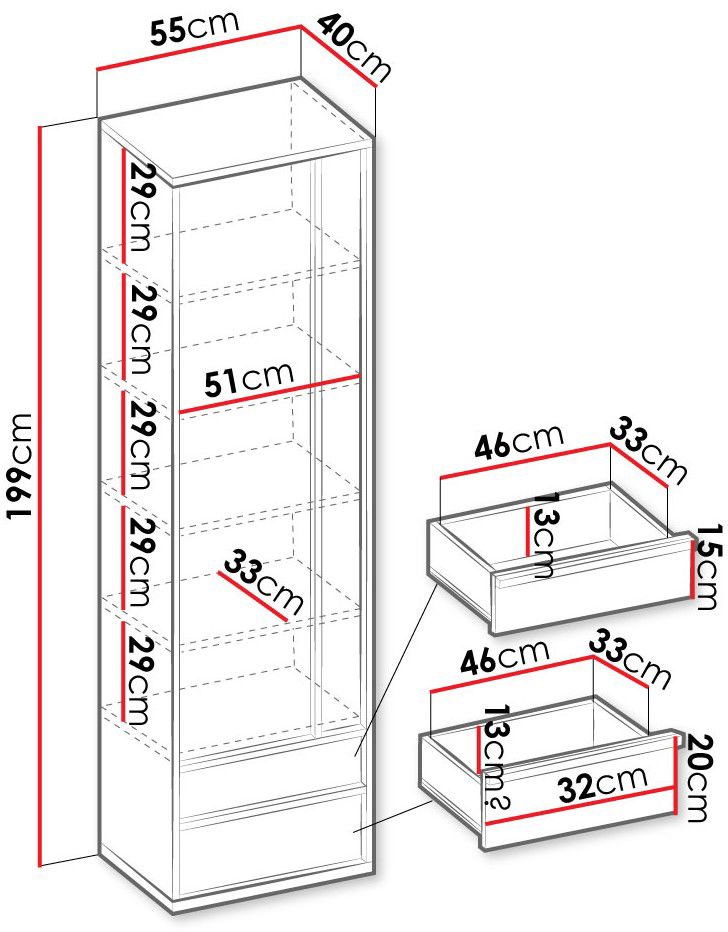*Απαραίτητη η ύπαρξη επαρκούς χώρου για την ομαλή συναρμολόγηση της ντουλάπας.