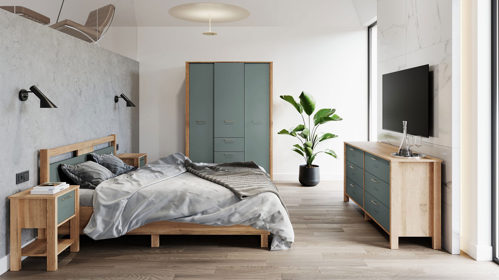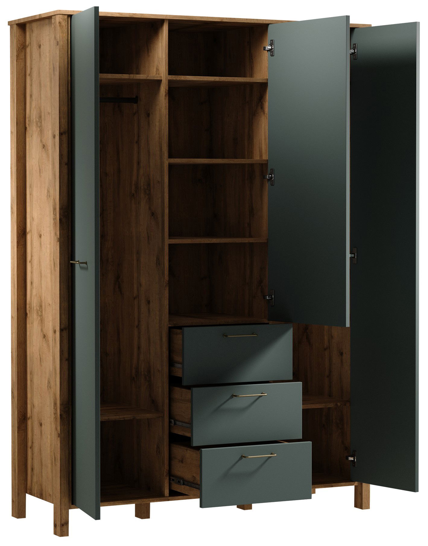 Η κομψή και λειτουργική ντουλάπα Indygo τρίφυλλη προσφέρει άφθονο αποθηκευτικό χώρο για τα ρούχα και τα πράγματά σας. Ο συνδυασμός του κομψού φινιρίσματος και των θερμών ξύλινων πινελιών δημιουργεί μια μοντέρνα και φιλόξενη εμφάνιση.
