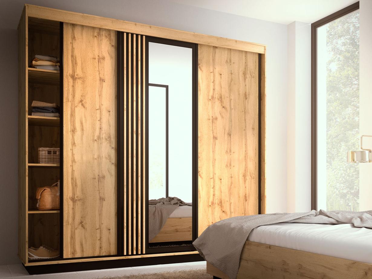 Η συρόμενη ντουλάπα Lamelo LA19 είναι μια κομψή ντουλάπα πρακτικών διαστάσεων που αποτελεί απαραίτητη προσθήκη σε κάθε χώρο.Προσθέστε άφθονο αποθηκευτικό χώρο στο υπνοδωμάτιο, επιλέγοντας μια τρίφυλλη ντουλάπα γενναιόδωρων διαστάσεων, με ποικίλους αποθηκευτικούς χώρους. Ο ενσωματωμένος ολόσωμος καθρέπτης στην πρόσοψη θα φωτίσει και θα μεγαλώσει το δωμάτιο.