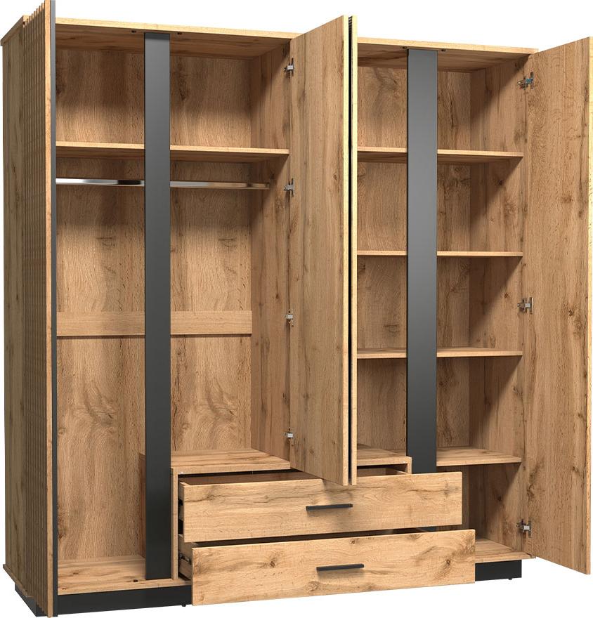 Η τετράφυλλη ντουλάπα Lamelo είναι μια κομψή ντουλάπα πρακτικών διαστάσεων που αποτελεί απαραίτητη προσθήκη σε κάθε χώρο.Προσθέστε άφθονο αποθηκευτικό χώρο στο υπνοδωμάτιο, επιλέγοντας μια τρίφυλλη ντουλάπα γενναιόδωρων διαστάσεων, με ποικίλους αποθηκευτικούς χώρους. Ο ενσωματωμένος ολόσωμος καθρέπτης στην πρόσοψη θα φωτίσει και θα μεγαλώσει το δωμάτιο.