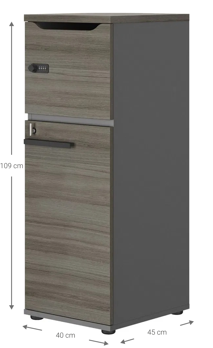 Η ντουλάπα Lockero συνδυάζει λειτουργικότητα και κομψότητα. Διαθέτει ένα άνω μέρος με κλειδαριά, ιδανικό για την αποθήκευση σημαντικών εγγράφων ή αντικειμένων. Το κάτω μέρος διαθέτει ένα ευρύχωρο συρτάρι, προσφέροντας επιπλέον χώρο αποθήκευσης. Ο σχεδιασμός του είναι μινιμαλιστικός, καθιστώντας το κατάλληλο για διάφορους χώρους, όπως γραφεία ή σπίτια.