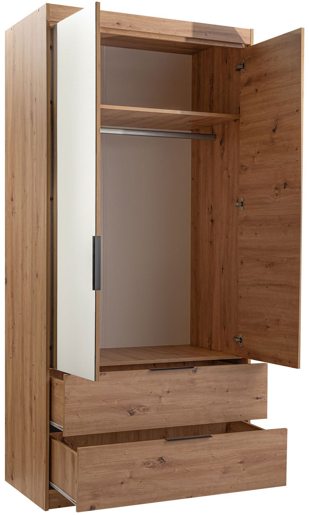 Η δίφυλλη ντουλάπα Majorka 103 συνδυάζει στυλ και λειτουργικότητα, προσφέροντας οργανωμένο αποθηκευτικό χώρο για το σαλόνι ή την κρεβατοκάμαρα.
