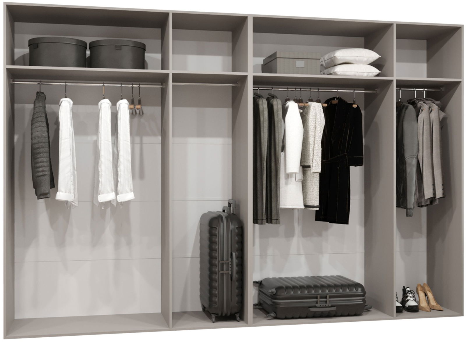 Η εξάφυλλη ντουλάπα Malaga plus είναι ευρύχωρη, μοντέρνα και λειτουργική, ιδανική για υπνοδωμάτιο ή βεστιάριο. Χωρίς χερούλια, με κομψό σχεδιασμό και πρακτικά ανοίγματα.