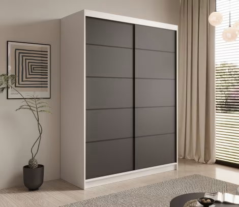 Η ντουλάπα Naldo 150 συρόμενη αποτελεί ιδανική λύση για υπνοδωμάτιο, διάδρομο ή καμαρίνι. Χάρη στις συρόμενες πόρτες της, παρέχει άνετη χρήση ακόμη και σε μικρότερα δωμάτια. Η μοντέρνα αισθητική της την κάνει να ταιριάζει αρμονικά τόσο με μινιμαλιστικές όσο και με πιο κλασικές διαρρυθμίσεις.