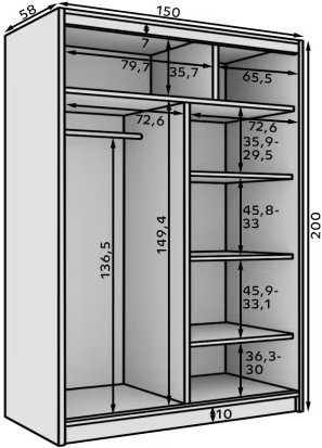 Ντουλάπα Naldo 150 συρόμενη -Leuko-Mauro