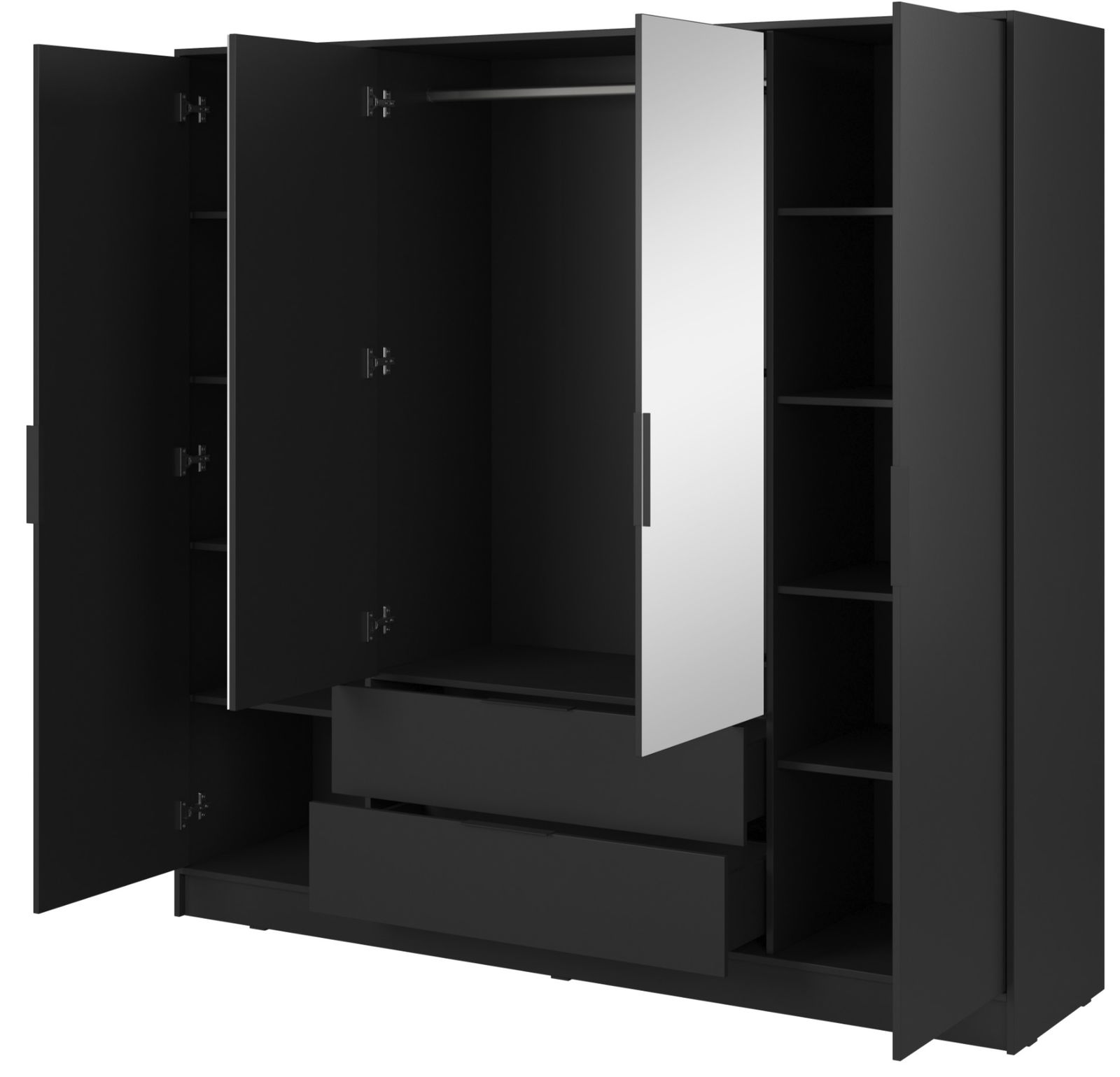 Αναβαθμίστε τον αποθηκευτικό χώρο του υπνοδωματίου σας με την κομψή και μοντέρνα Ντουλάπα Nelly τετράφυλλη IIΙ. Κατασκευασμένη με μινιμαλιστικό σχεδιασμό, αυτή η ντουλάπα συνδυάζει άψογα το στυλ και τη λειτουργικότητα. Ο συνδυασμός κλειστών φύλλων και των καθρέπτων δημιουργεί μια οπτικά ελκυστική αντίθεση, ενώ το ευρύχωρο εσωτερικό προσφέρει άφθονο χώρο αποθήκευσης για τα ρούχα και τα πράγματά σας.