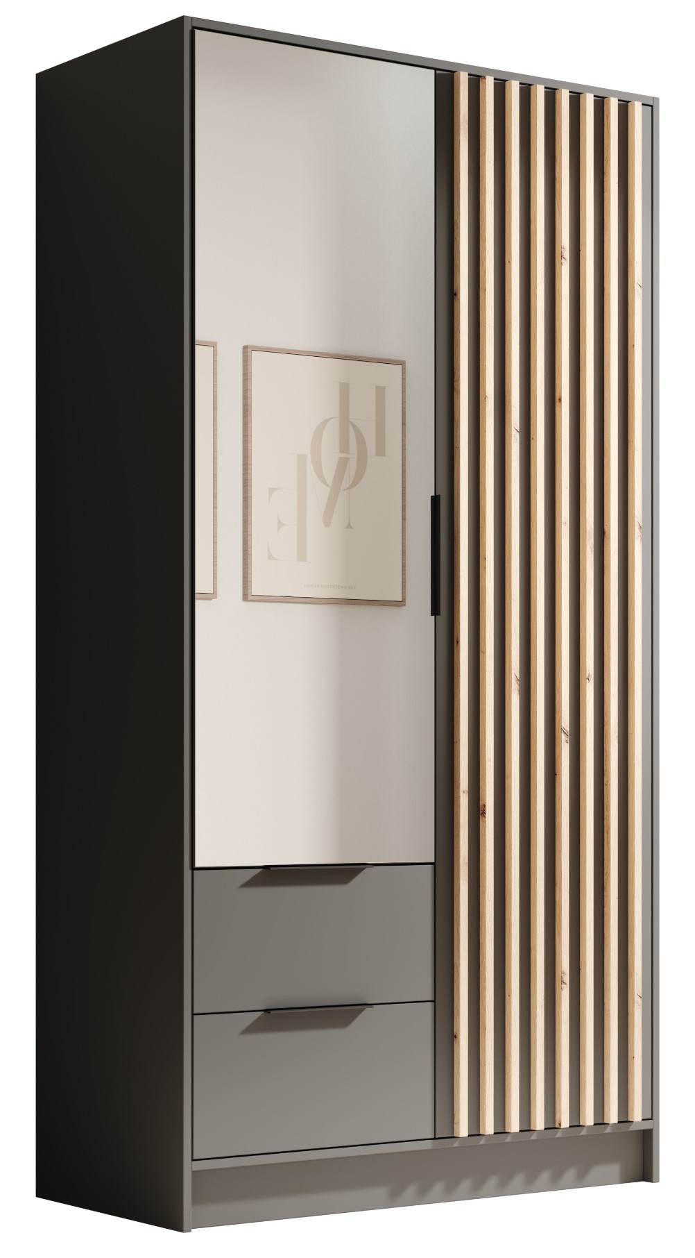 Η μοντέρνα και κομψή ντουλάπα Niriam δίφυλλη είναι η τέλεια προσθήκη σε κάθε υπνοδωμάτιο. Ο κομψός σχεδιασμός της και ο συνδυασμός των θυρών με καθρέφτη και των κάθετων ξύλινων πινελιών δημιουργούν ένα οπτικά ελκυστικό και λειτουργικό έπιπλο. Η ντουλάπα Niriam είναι συμπαγής, ιδανική για μικρότερα δωμάτια κι όχι μόνο!