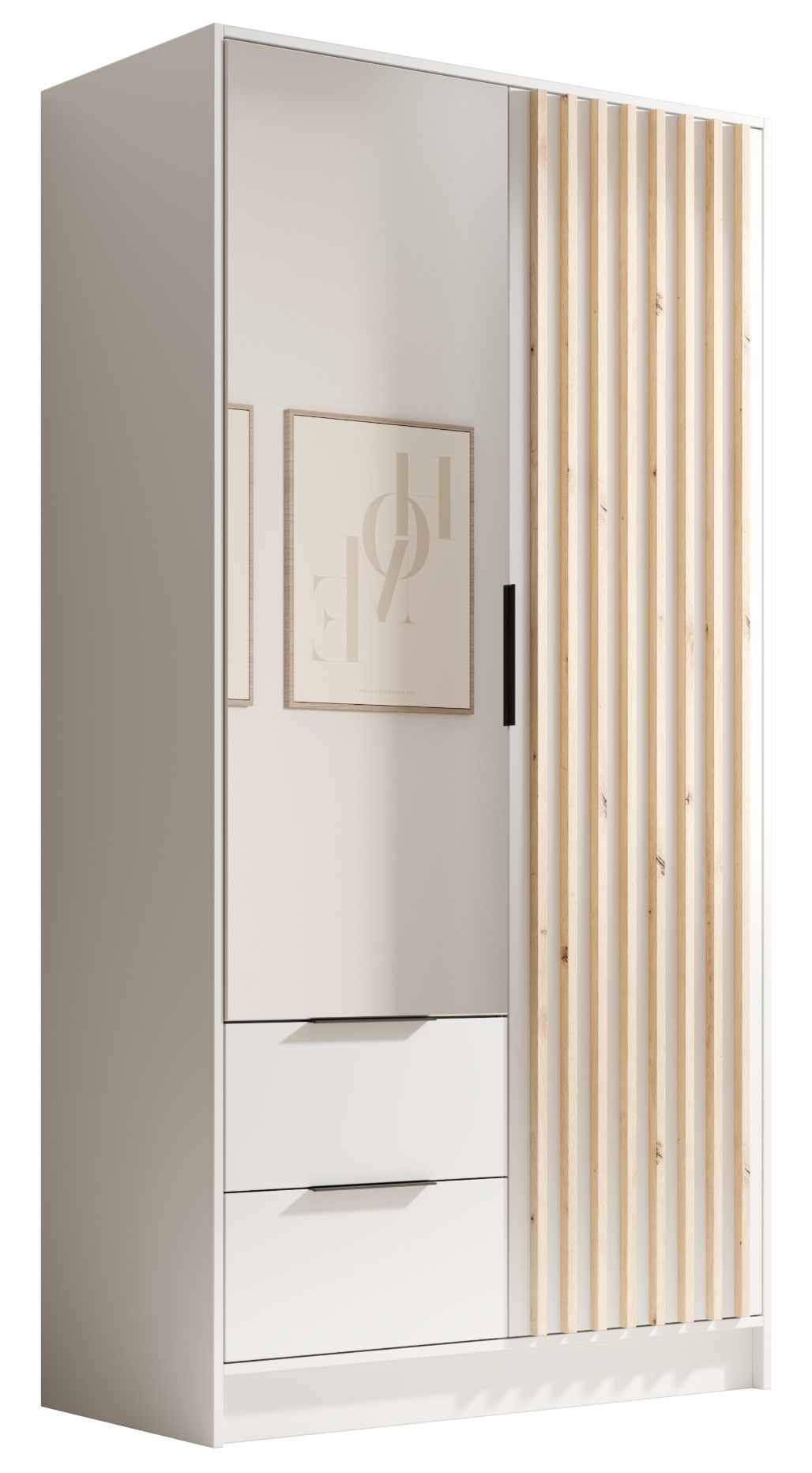 Η μοντέρνα και κομψή ντουλάπα Niriam δίφυλλη είναι η τέλεια προσθήκη σε κάθε υπνοδωμάτιο. Ο κομψός σχεδιασμός της και ο συνδυασμός των θυρών με καθρέφτη και των κάθετων ξύλινων πινελιών δημιουργούν ένα οπτικά ελκυστικό και λειτουργικό έπιπλο. Η ντουλάπα Niriam είναι συμπαγής, ιδανική για μικρότερα δωμάτια κι όχι μόνο!