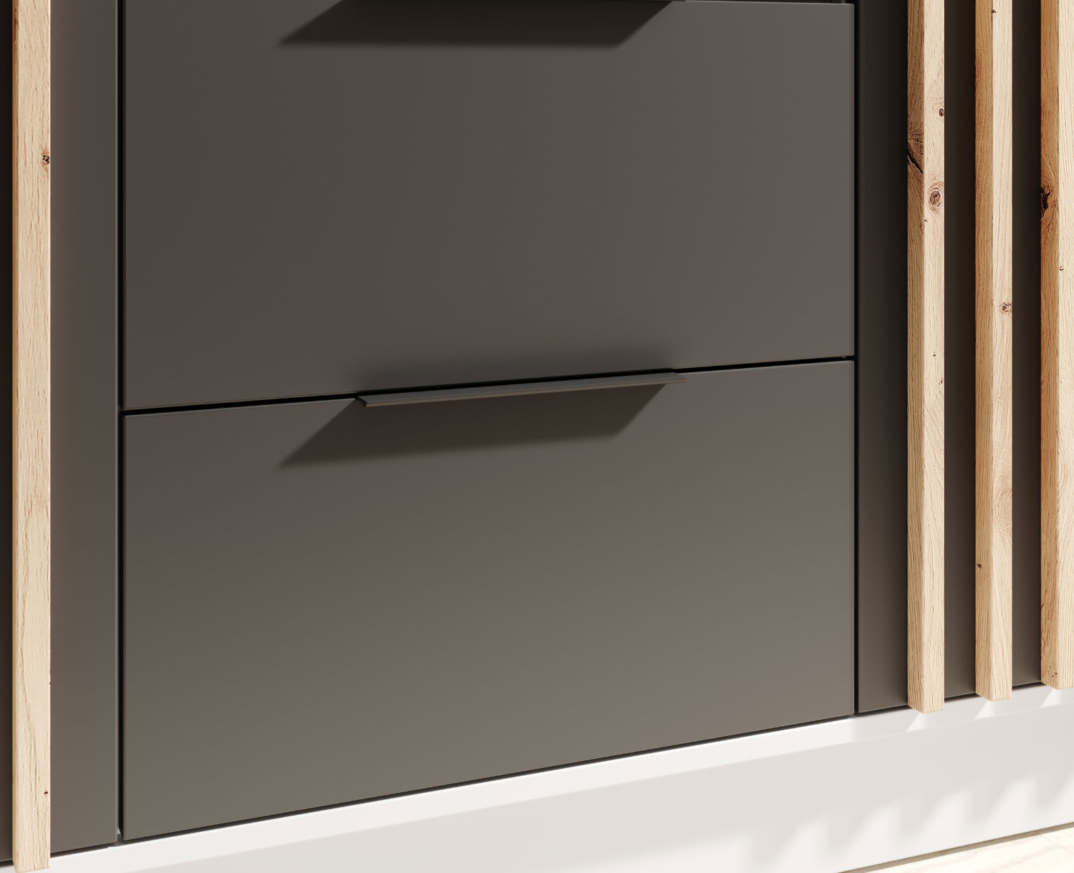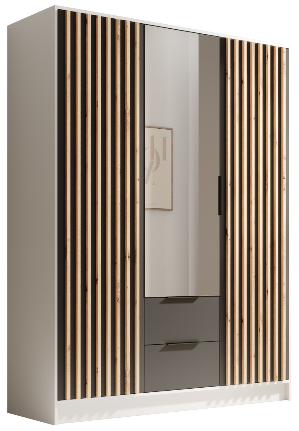 Η μοντέρνα και κομψή ντουλάπα Niriam τρίφυλλη είναι η τέλεια προσθήκη σε κάθε υπνοδωμάτιο. Ο κομψός σχεδιασμός της και ο συνδυασμός των θυρών με καθρέφτη και των κάθετων ξύλινων πινελιών δημιουργούν ένα οπτικά ελκυστικό και λειτουργικό έπιπλο. Η ντουλάπα Niriam είναι ένας τέλειος συμβιβασμός σε χώρο και μέγεθος!