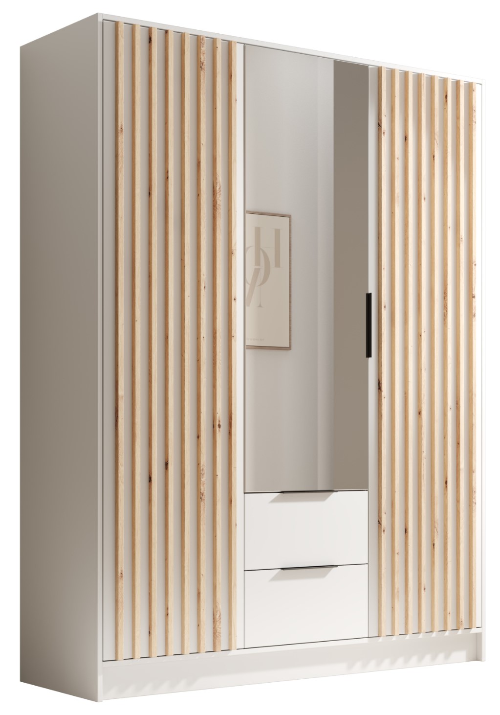 Η μοντέρνα και κομψή ντουλάπα Niriam τρίφυλλη είναι η τέλεια προσθήκη σε κάθε υπνοδωμάτιο. Ο κομψός σχεδιασμός της και ο συνδυασμός των θυρών με καθρέφτη και των κάθετων ξύλινων πινελιών δημιουργούν ένα οπτικά ελκυστικό και λειτουργικό έπιπλο. Η ντουλάπα Niriam είναι ένας τέλειος συμβιβασμός σε χώρο και μέγεθος!