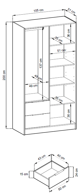 *Απαραίτητη η ύπαρξη επαρκούς χώρου για την ομαλή συναρμολόγηση της ντουλάπας.