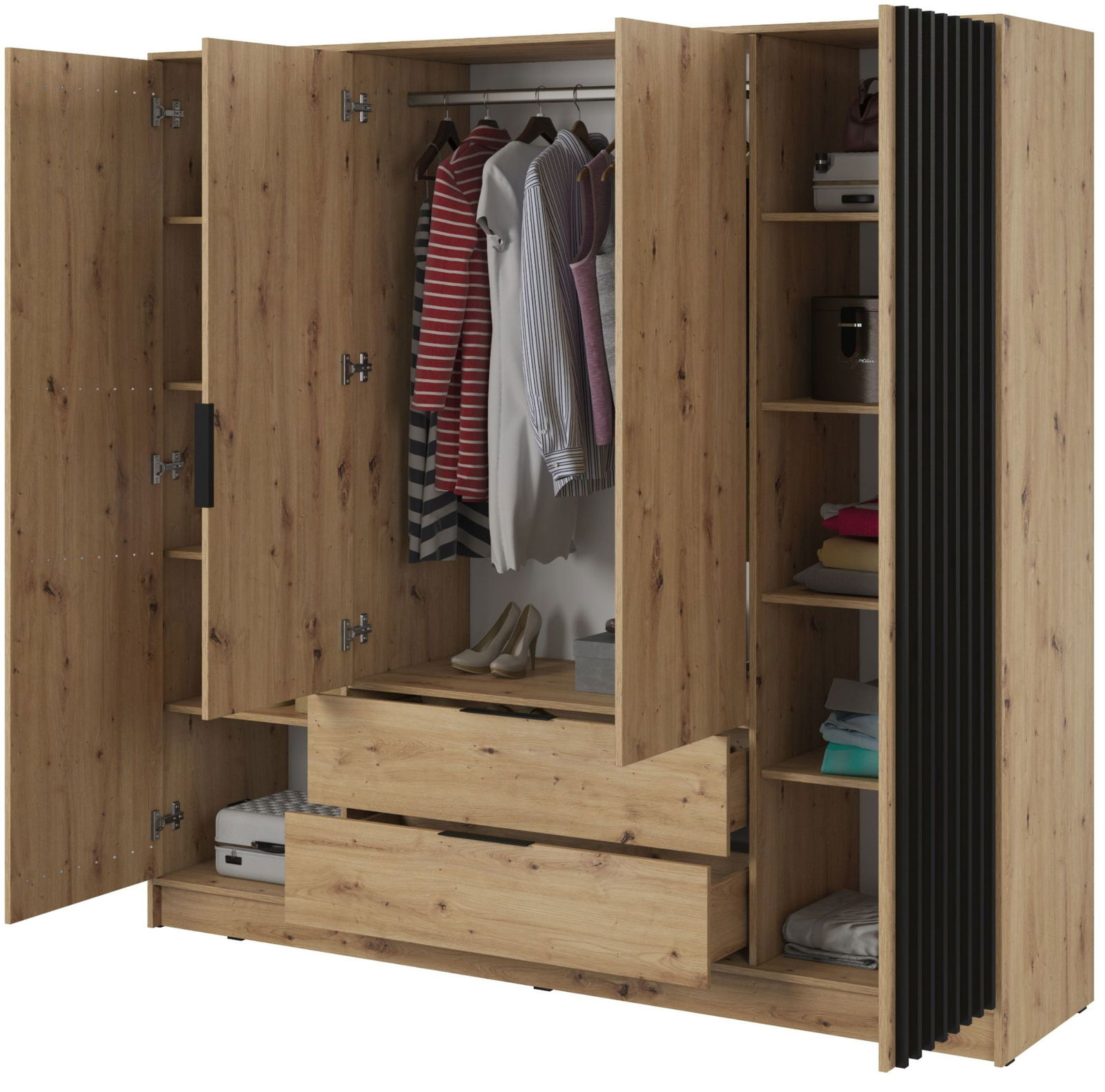 Ντουλάπα Nolan Τετράφυλλη μοντέρνου σχεδιασμού με αρκετούς αποθηκευτικούς χώρους.