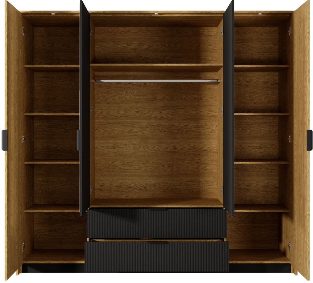 Η Ντουλάπα Nordic Τετράφυλλη συνδιάζει το δρυ και τη μαύρη λεπτομέρεια. Είναι ένα αρμονικό μείγμα ζεστού ξύλου και σκούρων πινελιών. Αυτό το κρεβάτι είναι ένα statement κομμάτι που φέρνει μοντέρνα κομψότητα στην κρεβατοκάμαρά σας. Συνδιάστε το προϊόν και με τα υπόλοιπα της σειράς Nordic.