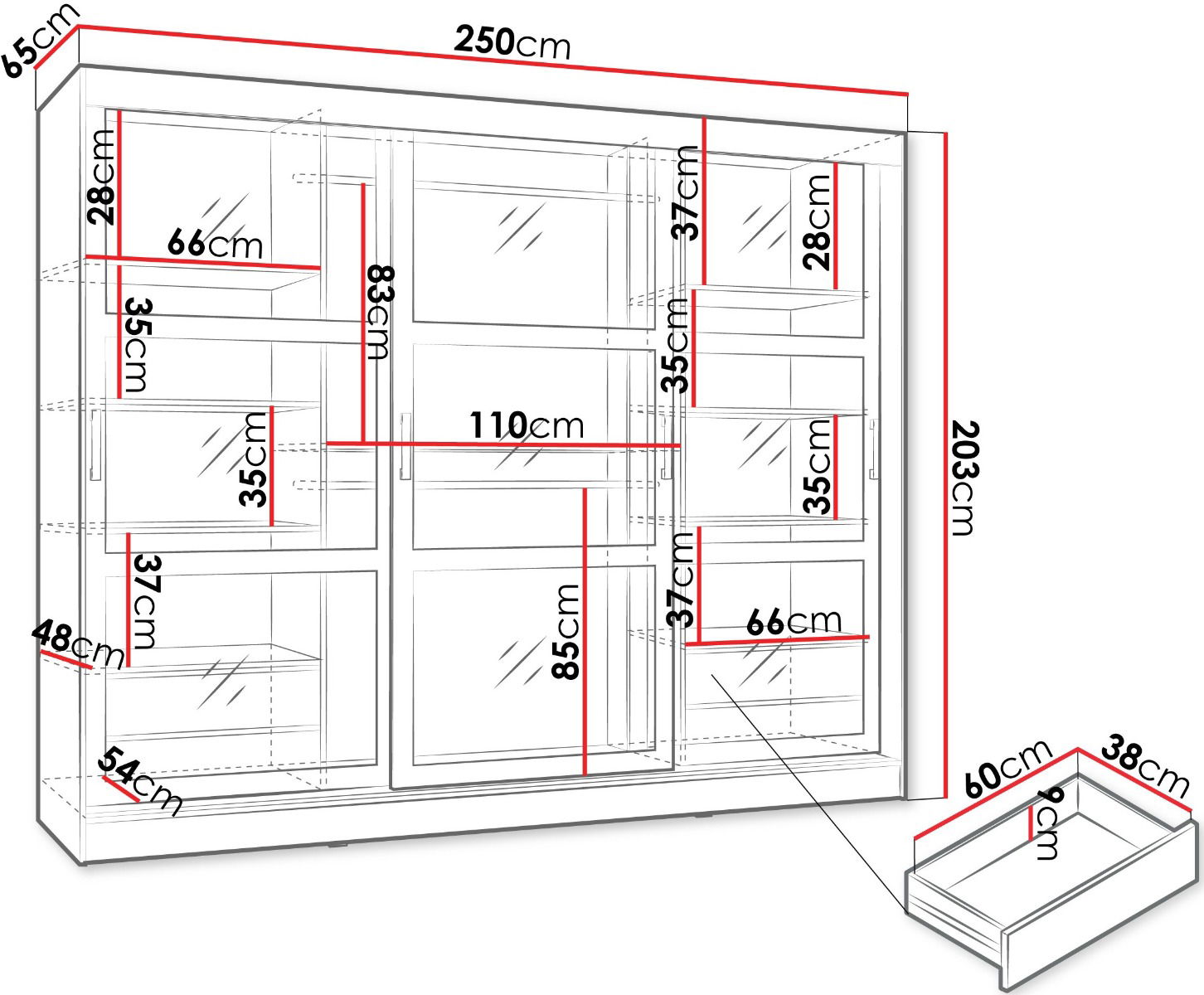 *οι ράγες, τα συρτάρια & ο φωτισμός LED συμπεριλαμβάνονται στην τιμή