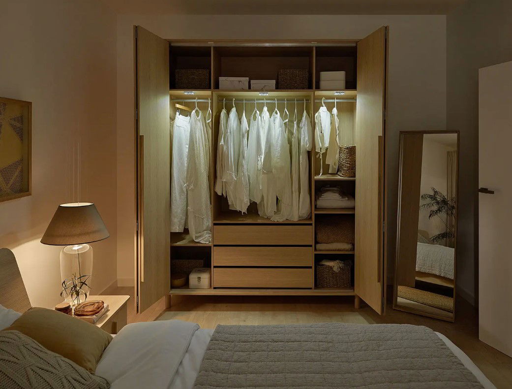 – Στο εσωτερικό της ντουλάπας υπάρχουν λαμπτήρες LED με αισθητήρες κίνησης – ανάβουν όταν ανοίγει το έπιπλο