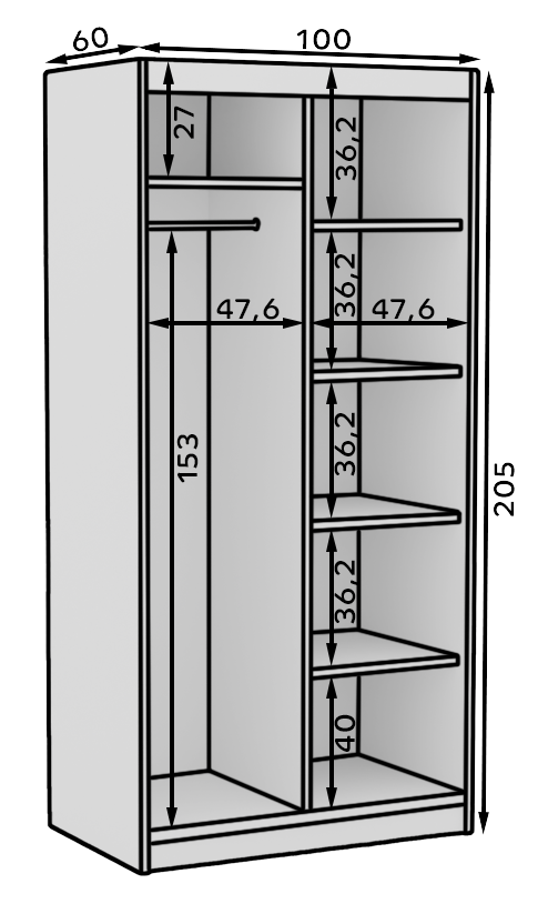 Ντουλάπα Reflecta 100 συρόμενη-Mauro