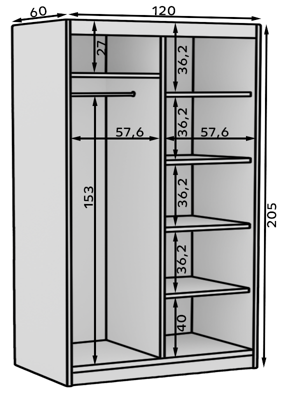 Η ντουλάπα Reflecta 120 συρόμενη είναι η τέλεια λύση για όσους εκτιμούν τον σύγχρονο σχεδιασμό και τις πρακτικές λύσεις. Χάρη στη λιτή της μορφή και τον μινιμαλιστικό της χαρακτήρα, θα ταιριάξει τέλεια σε οποιονδήποτε χώρο, προσφέροντας κομψότητα και αίσθηση ευρυχωρίας. Οι καθρέφτες στις πόρτες δεν προσδίδουν μόνο στυλ στη ντουλάπα, αλλά επίσης μεγεθύνουν οπτικά τον χώρο στον οποίο βρίσκεται.