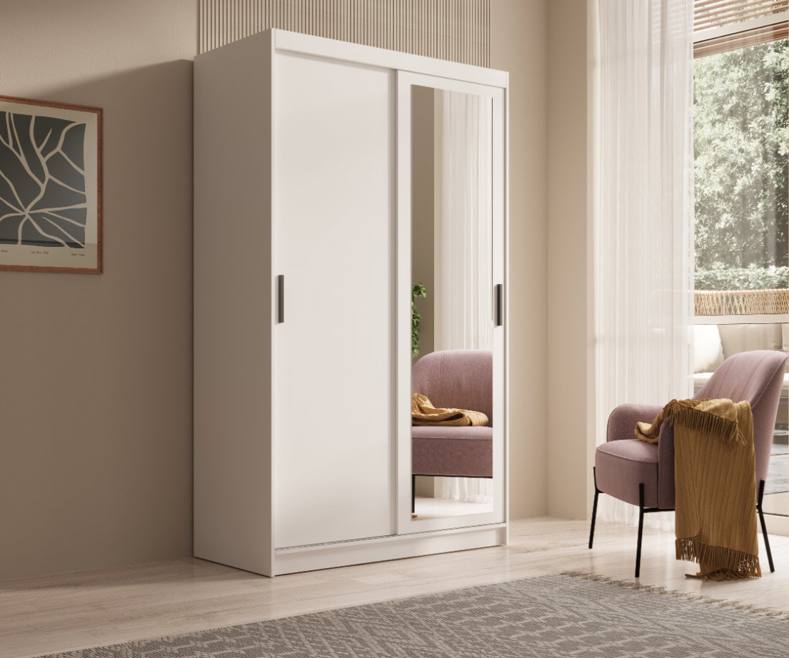 Η ντουλάπα Reflecta 120 συρόμενη είναι η τέλεια λύση για όσους εκτιμούν τον σύγχρονο σχεδιασμό και τις πρακτικές λύσεις. Χάρη στη λιτή της μορφή και τον μινιμαλιστικό της χαρακτήρα, θα ταιριάξει τέλεια σε οποιονδήποτε χώρο, προσφέροντας κομψότητα και αίσθηση ευρυχωρίας. Οι καθρέφτες στις πόρτες δεν προσδίδουν μόνο στυλ στη ντουλάπα, αλλά επίσης μεγεθύνουν οπτικά τον χώρο στον οποίο βρίσκεται.